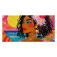Impresionante retrato de arte pop de inspiración retro con una mujer de cabello oscuro y con flores tropicales. Agrega una ráfaga de color y energía positiva. Un efecto de papel espumoso completa el aspecto retro.