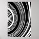 Obra de arte inspirada en los años sesenta, con un patrón repetido de círculo negro y blanco que toca una fibra en los espectadores a medida que los dibuja en ... y en ... y etc, etc...... Hipnosis en un lienzo.