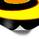 Resumen y diseño geométrico de moda colorido con estilo retro, círculos amarillos y naranjas sobre fondo negro