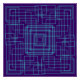 Cuadros intersectados azul claro en el laberinto geométrico sobre fondo azul