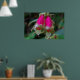 Un diseño fotográfico de momentos con flores de leopardo gemelas colocadas sobre un fondo verde tropical exuberante en este diseño único de flores de leopardo, perfecto para cualquier ocasión.
