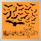 Barra de música con notas al cráneo, apertura y con muchos murciélagos volando.