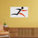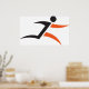 Un símbolo de icono negro y naranja de una persona en ejecución. Este diseño parece realmente efectivo en este Poster