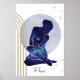 Póster Diseño de zodiaco de oro azul femenino Pisces