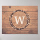 Diseño de monograma para Navidades con decoración de flores y nieve sobre fondo rústico de madera
