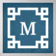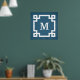 Diseño monograma con decoración de borde clave griega sobre fondo azul grueso