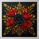 Rosas negras y rojas, hojas doradas regias y mariposas vívidas