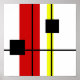 Diseño geométrico abstracto de arte moderno con líneas negras, rojas, amarillas y cuadrados negros sobre fondo blanco
