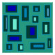 rectángulos y cuadrados azul claro y verde menta sobre fondo verde. Patrón simple y colorido