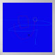 Un diseño minimalista presenta líneas geométricas simples en rojo, azul y cian con un fondo azul intenso. Las formas incluyen un cuadrado, un círculo y líneas curvadas, creando una composición abstracta.