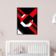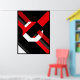Una composición geométrica potente con un hexágono blanco fragmentado interseccionado por diagonales rojas y negras audaces. Plano, fresco y de inspiración constructivista, este diseño añade un sorprendente dinamismo visual a los interiores modernos.