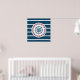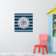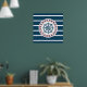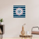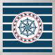 Diseño náutico con decoración de brújula en forma redonda sobre fondo rayado azul y blanco