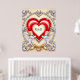 Obra de arte romántica de diseño intrincado con cherubs sosteniendo anillos, un corazón en el centro rodeado de gemas y perlas, simbolizando amor, bodas y romance. Perfecto para los temas de valentina o boda.