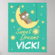 Un diseño de sueños dulces para bebés o niños pequeños. Un deseo de dormir tranquilo al estilo personalizado con un búho adorable y la luna. El nombre debe ser personalizado de acuerdo a la preferencia. Un gran regalo personalizado para una ocasión especial.