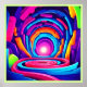 Explore un cautivador túnel de arte neón repleto de colores vibrantes y patrones geométricos abstractos. Ideal para la moda, la decoración casera, el arte de la pared o los espacios de oficina modernos (Este diseño hecho con IA). ¡Haga el pedido hoy y acepte la alegría de ir de compras!
