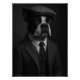 Boston Terrier, dog, pet, suit, flat cap, distinguished, gentleman, vintage, black and white, portrait, animal, unique, funny, whimsical, art, canine, classy, Peaky Blinders, retro, wall art, decor, gift