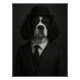 Presenting a captivating black and white portrait of a Cavalier King Charles Spaniel, exuding sophistication in a tailored suit and classic bowler hat. This charming and elegant design is perfect for dog lovers, particularly Cavalier enthusiasts, and those who appreciate unique animal artistry. It adds a touch of quirky refinement to any living room, office, or gallery wall.