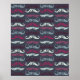 A fun mustache print pattern in a lovely shades of berry,violet, and powder blue.
