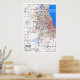 Este mapa muestra los distritos legislativos estatales que cubren el noreste de Illinois. Los distritos de la Cámara y el Senado están delineados en rojo con números de distrito apropiados. El mapa también muestra municipios, condados, carreteras principales, vías férreas y cuerpos de agua.