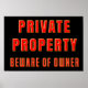 Cambie el fondo negro detrás de este diseño a cualquier color que prefiera. Las letras rojas, PROPIEDAD PRIVADA CUIDADO CON EL PROPIETARIO, están delineadas con una delgada línea amarilla brillante.