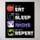 Póster Divertido comiendo para dormir anime repetir regal