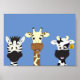Póster de ilustración de cebra jirafa vaca linda