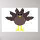Este poster presenta un personalizado gracioso de un pavo con grandes ojos negros, un pequeño pico amarillo y plumas de cola pegadas. Los pies se encuentran en direcciones opuestas, lo que hace que el pavo parezca torpe. Este divertido diseño es ideal para Acción de Gracias.