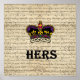 Divertido y gracioso texto "suyo" con un ilustracion de la corona morada en un fondo manuscrito de papel vintage.