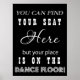 Blanco y negro: "Puedes encontrar tu asiento aquí, pero tu sitio está en la pista de baile", carteles graciosos para la recepción de la boda.
