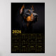 Command attention year-round with this 2026 calendar featuring a striking Doberman Pinscher in a poised, alert stance. Set against a dark backdrop, the dog’s sleek silhouette and focused gaze evoke strength and sophistication. The clean yellow-on-black monthly grid offers high contrast and easy readability, making this calendar a perfect blend of functionality and visual impact. Ideal for Doberman enthusiasts, dog lovers, and fans of bold, minimalist design.