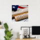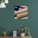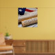 Copias de la Declaración de Independencia y la Constitución de los Estados Unidos enrolladas con una bandera vintage de los Estados Unidos