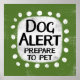 Un diseño tipográfico de animales irreverente y lindo que dice "Alerta de perro, prepárate para el Mascota". Presenta texto en negro y rojo sobre un rectángulo blanco con puntos blancos divertidos y juguetones rodeándolo, todo sobre un fondo gris.
