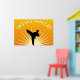 Un hombre de artes marciales patea delante de un diseño de amanecer en este poster para las habitaciones de Karate, Tae Kwon Do.