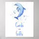 Una pequeña invitación a bañarse bajo la temática del mar, con un delfín bebé con suaves acuarelas azules. Burbujas acuáticas.