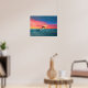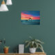 Poster con obras de arte de una divertida maceta de delfines nadando y saltando al océano bajo una hermosa puesta de sol en la playa (obra de arte original KL Stock)