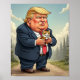 Un personalizado gracioso de Donald Trump parado y sosteniendo un gatito en las manos.