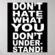 Póster Dont Hate What You Dont Understand