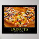Mmm... donuts. Everyone loves donuts. This donut is covered in white frosting and rainbow sprinkles. Hang this poster on your wall and drool whenever you see it.