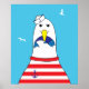 Póster de diseño de gaviota de dibujos animados audaces para niños