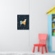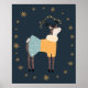 Decora el dormitorio de tu pequeño con este adorable cartel de ciervos y estrellas modernas escandinavas sobre un fondo azul oscuro. © Julie McIver