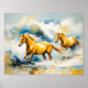 Póster Dos caballos galopando a través de agua poco profu