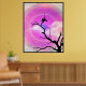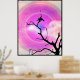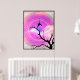 Póster Dos Crows Silhouette BW Fotografía Con Sol Púrpura