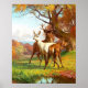 Póster Dos Deer Rojo Y Blanco En El Bosque