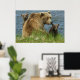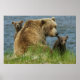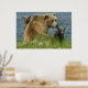 Póster Dos oseznos marrones con madre junto al agua