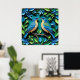 Elegante obra de arte hecha a mano que representa dos pájaros azules y amarillos posados en medio de vibrante follaje y flores verdes, simbolizando la naturaleza y la habilidad artística. Ideal para temas de decoración, artesanía y ecosistemas vibrantes
