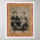 La Biblioteca Bancroft Presenta: Retrato de dos hombres sentados en sillas de madera uno al lado del otro, con violines y gorras y botas. Retrato de artista desconocido, 1865-1870.