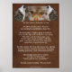 La poderosa "Historia de dos lobos" es una lección conocida, relevante y conmovedora que un anciano cheroqui le contó a sus nietos en forma de historia. Esta versión se ha colocado en un decorado rústico de cuero falso para crear un ambiente rico y auténtico. El 25% de las regalías de la venta de esta hermosa huella se donan a Defenders of Wildlife en: www.defenders.org