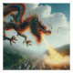 Un dragón de estilo chino que baja del cielo respirando fuego en una pequeña aldea. Por martinspixs.