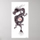 Dragón chino con símbolo de buena suerte lápiz blanco y negro poster de dibujo
