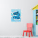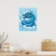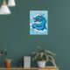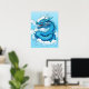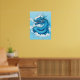 Poster en un intenso dragón chino, en tonos índigo azules y blancos, saliendo de las nubes